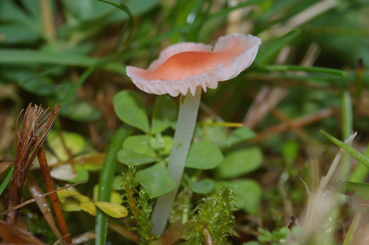 De adonismycena valt met zijn zalmrode hoed erg op tussen het gras of het mos. Deze zeldzame paddenstoel wordt niet groter dan 6 centimeter. Hij groeit zowel in weilanden als in het bos. Deze paddenstoel heeft zijn naam te danken aan de elegante verschijning . Een adonis is een heel mooie jongen.