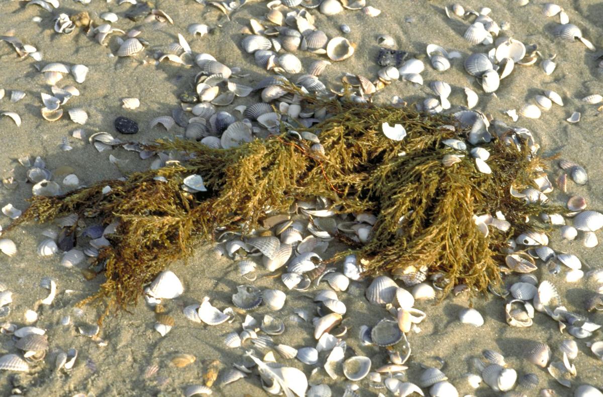 groot deel van de getijdenzone; wordt door sommige wieren als ondergrond gebruikt, kan ook andere wiersoorten overgroeien