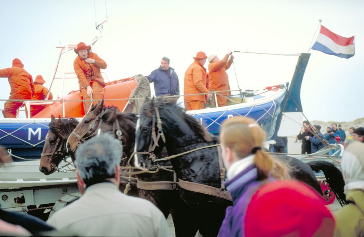 Het is een unieke belevenis om de paardenreddingboot vanuit het museum met donderend geweld uit te zien gaan. Na het sein van de stoomfluit verzamelen bemanning en voerlieden zich in het boothuis. De reddingsboot wordt door tien paarden naar het strand gebracht en in het water getrokken. De samenwerking tussen mens en paard zal u lang bijblijven. Zo werd tot 1988 op Ameland het reddingswerk uitgevoerd.