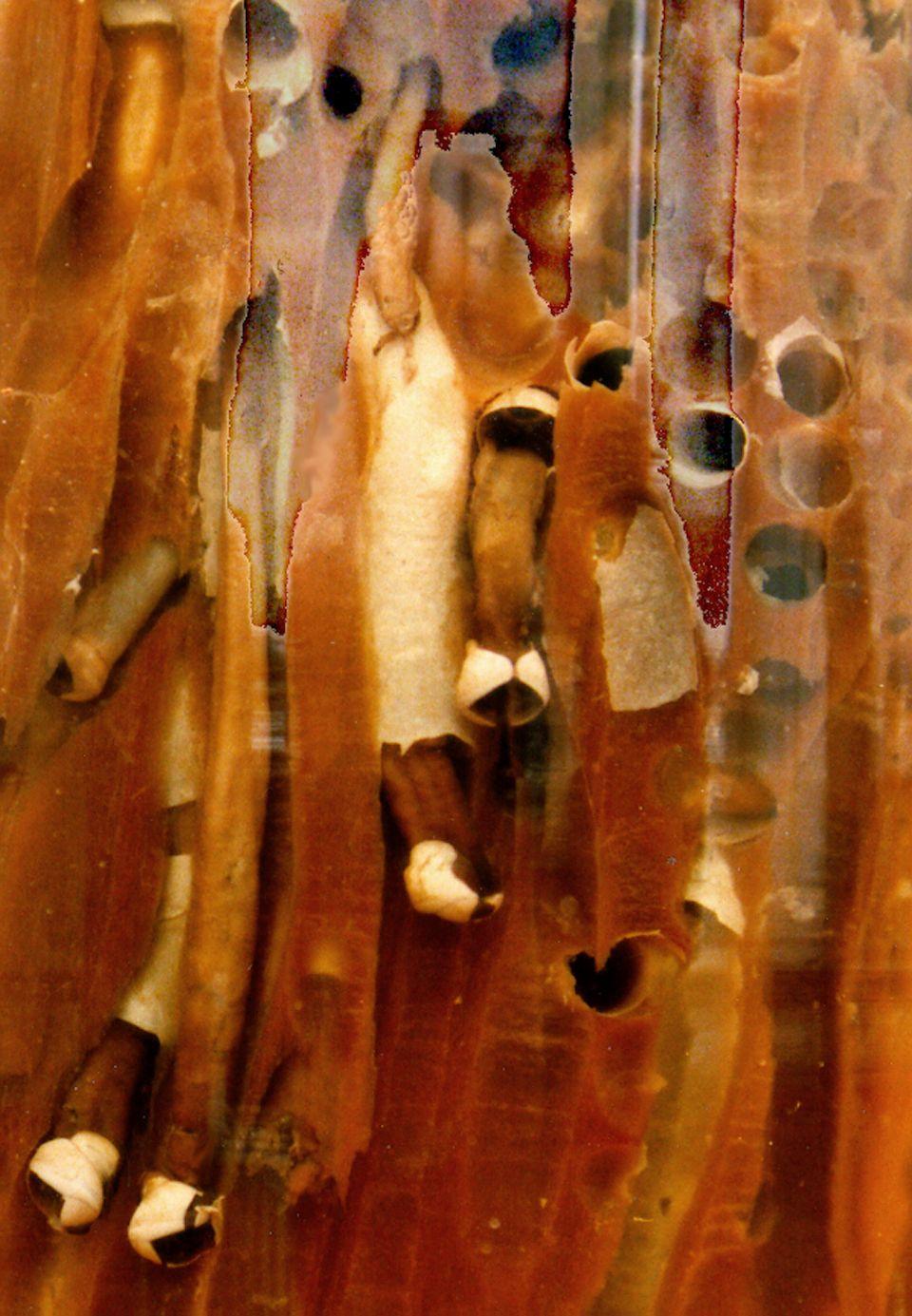 De paalworm leeft in de Nederlandse wateren ingegraven in hout. Je kunt ze vinden in scheepswrakken en houtafval in zee.