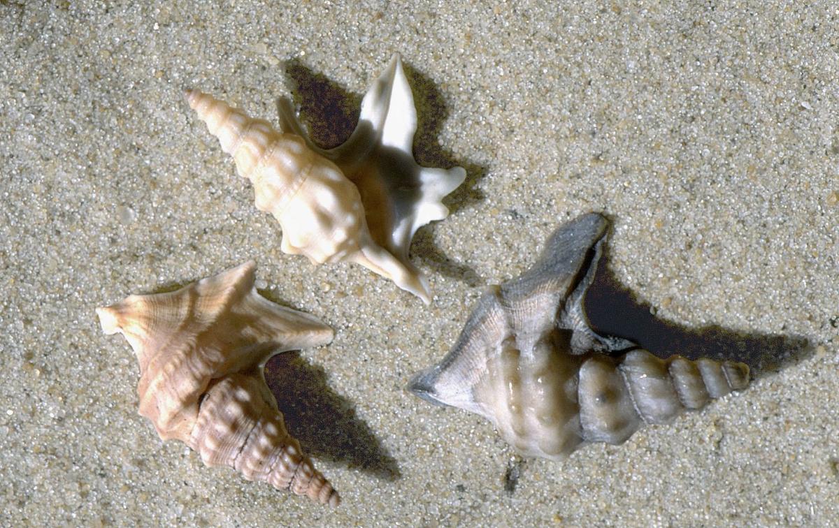 Op opgespoten stranden kun je ook fossiele soorten pelikaanvoeten tegenkomen. Op het strand van Knokke-Heist vind men soms zeer sterk beschadigde horentjes van de Pliocene soort Aporrhais scaldensis. Ook op de waddeneilanden zijn veel aangespoelde exemplaren fossiele schelpen, bijvoorbeeld uit de Eemtijd.