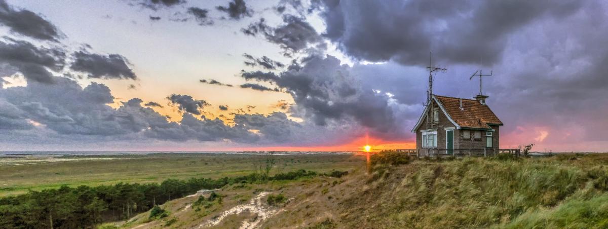 Vanaf dit duin is er een schitterend uitzicht over het dorp West-Terschelling, over de Noordsvaarder en over het wad; in de verte is Vlieland te zien.
